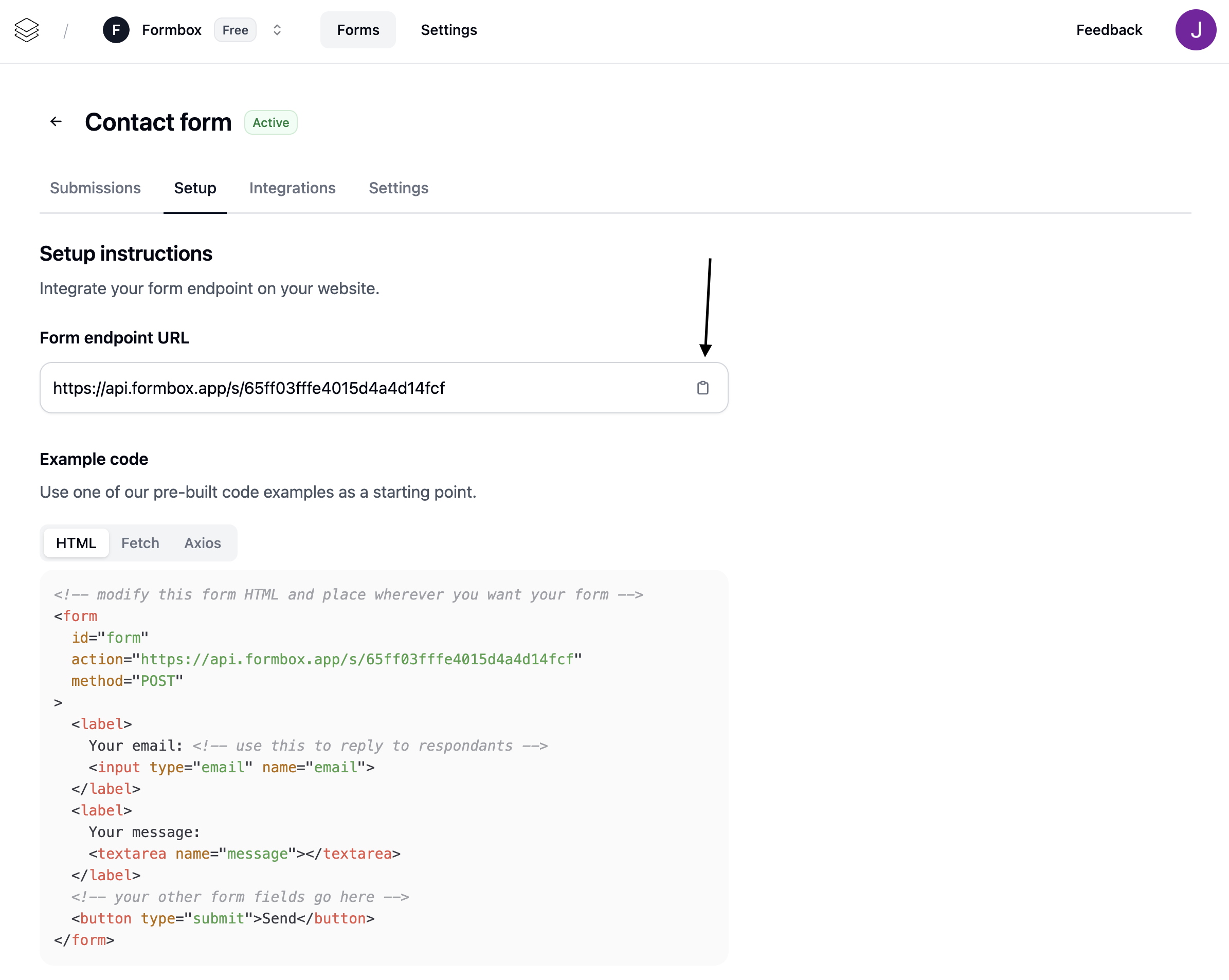 An example Formbox endpoint looks like this: https://api.formbox.app/s/XXXXXXXXStep 2. Creating a form in Formbox