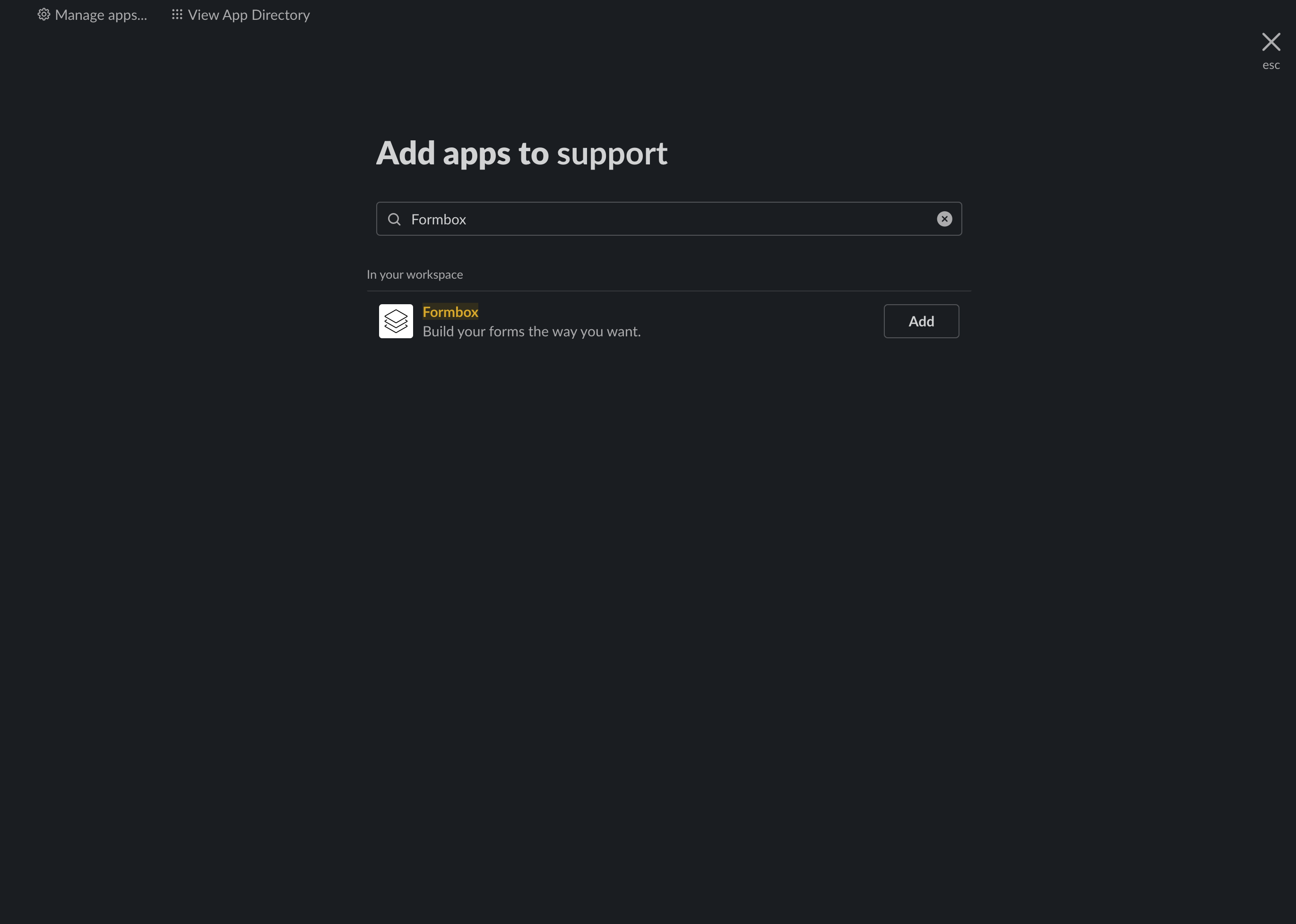 the conversation by typing /invite @formbox in the Slack channel or DM.